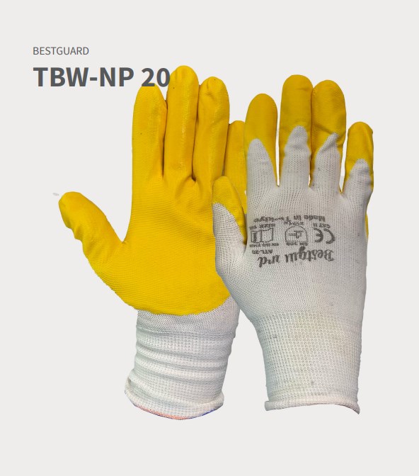 Bestguard NP-20, 13G polyester dokuma üzerine nitril 1/2 kaplamalı, dayanıklı ve ergonomik iş eldivenidir. Mekanik risklere karşı koruma sağlar, silikon içermez ve REACH yönetmeliğine uygundur. İnşaat, lojistik, otomotiv ve endüstriyel alanlarda güvenli kullanım için idealdir.